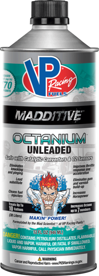 It is safe for use in cars and trucks with both catalytic converters and 02 sensors. Octanium Unleaded eliminates knocking and pinging, cleans fuel injectors, eliminates gum and varnish build-up, and improves throttle response and acceleration.